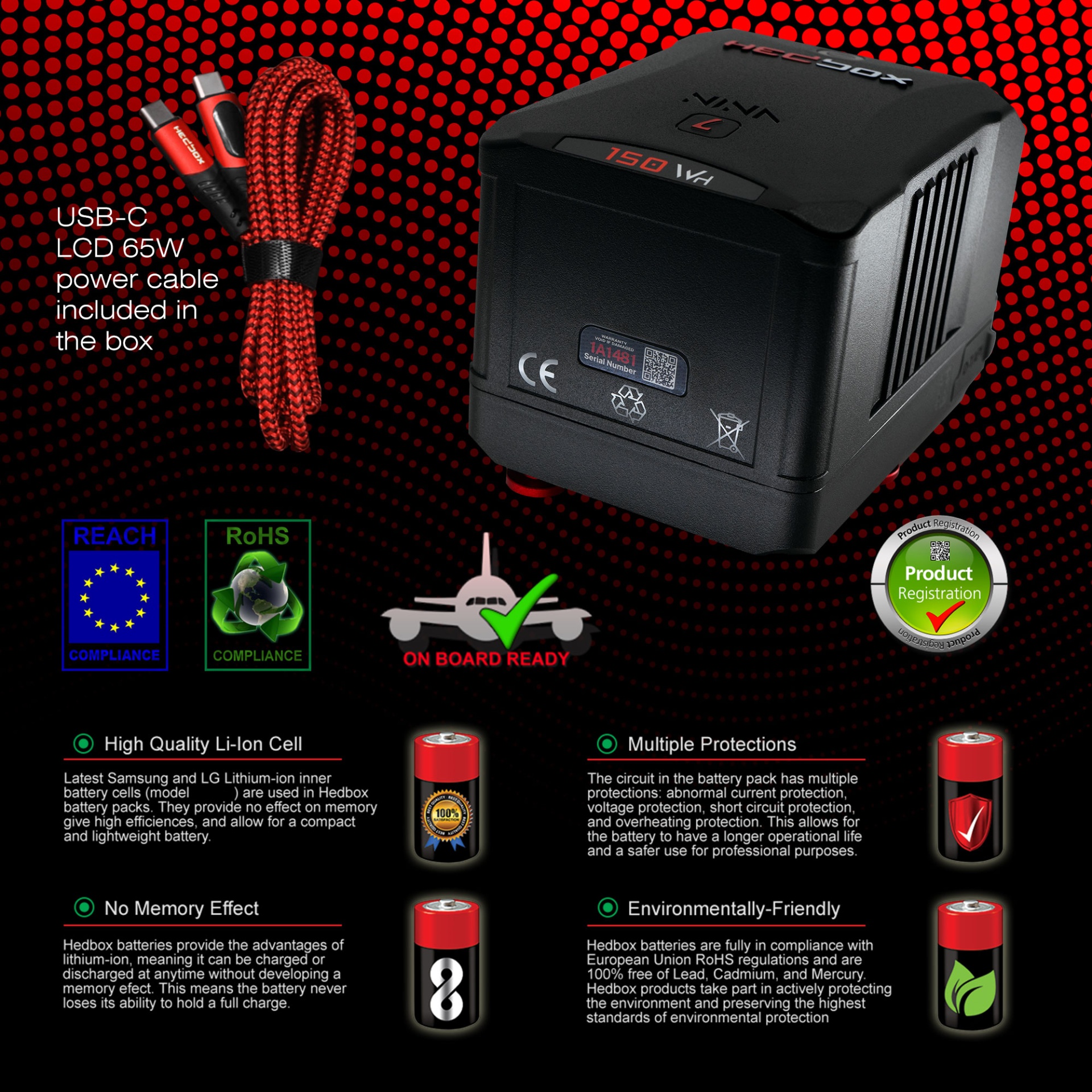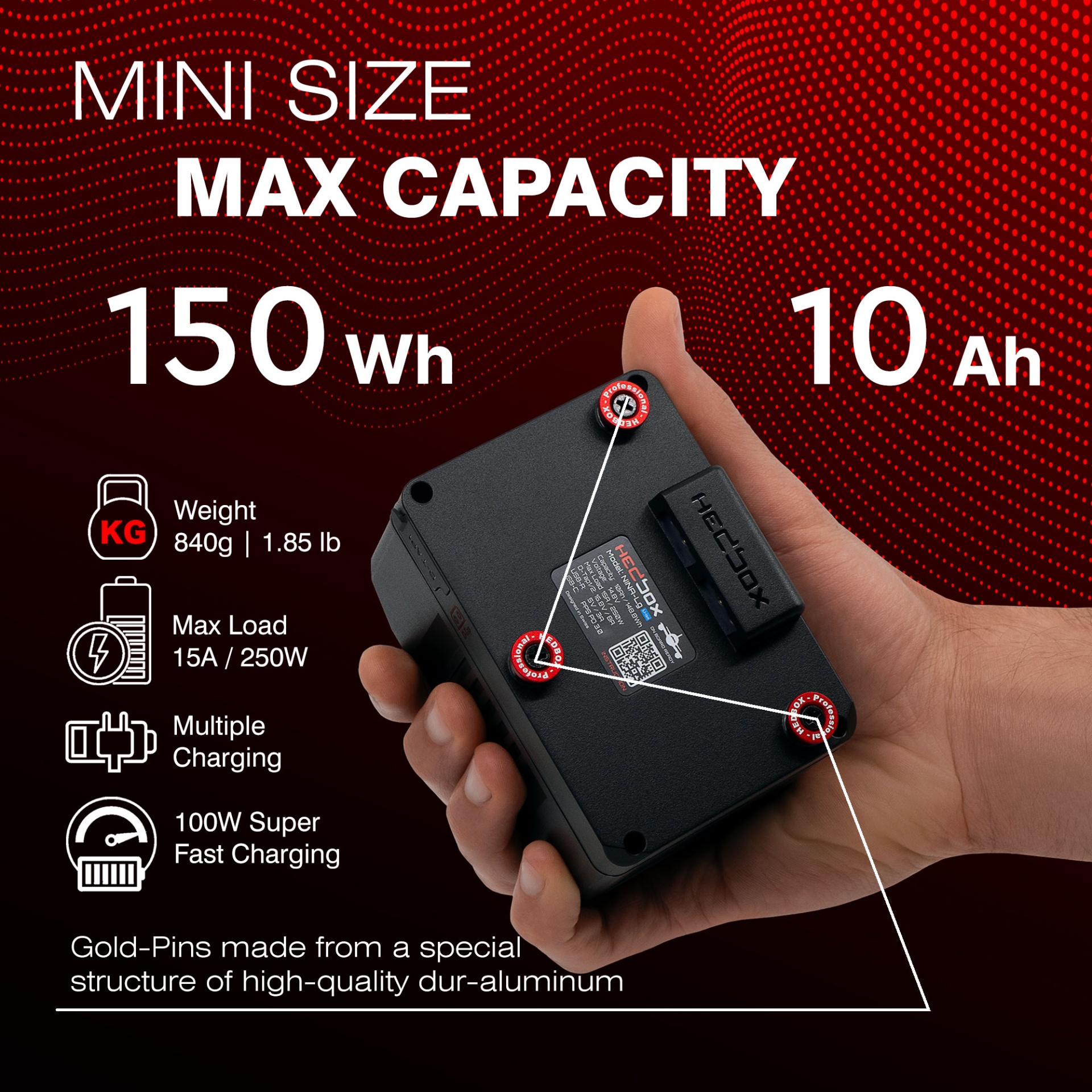 • Hedbox NINA-L - Mini GOLD-Mount SMART Battery 150W