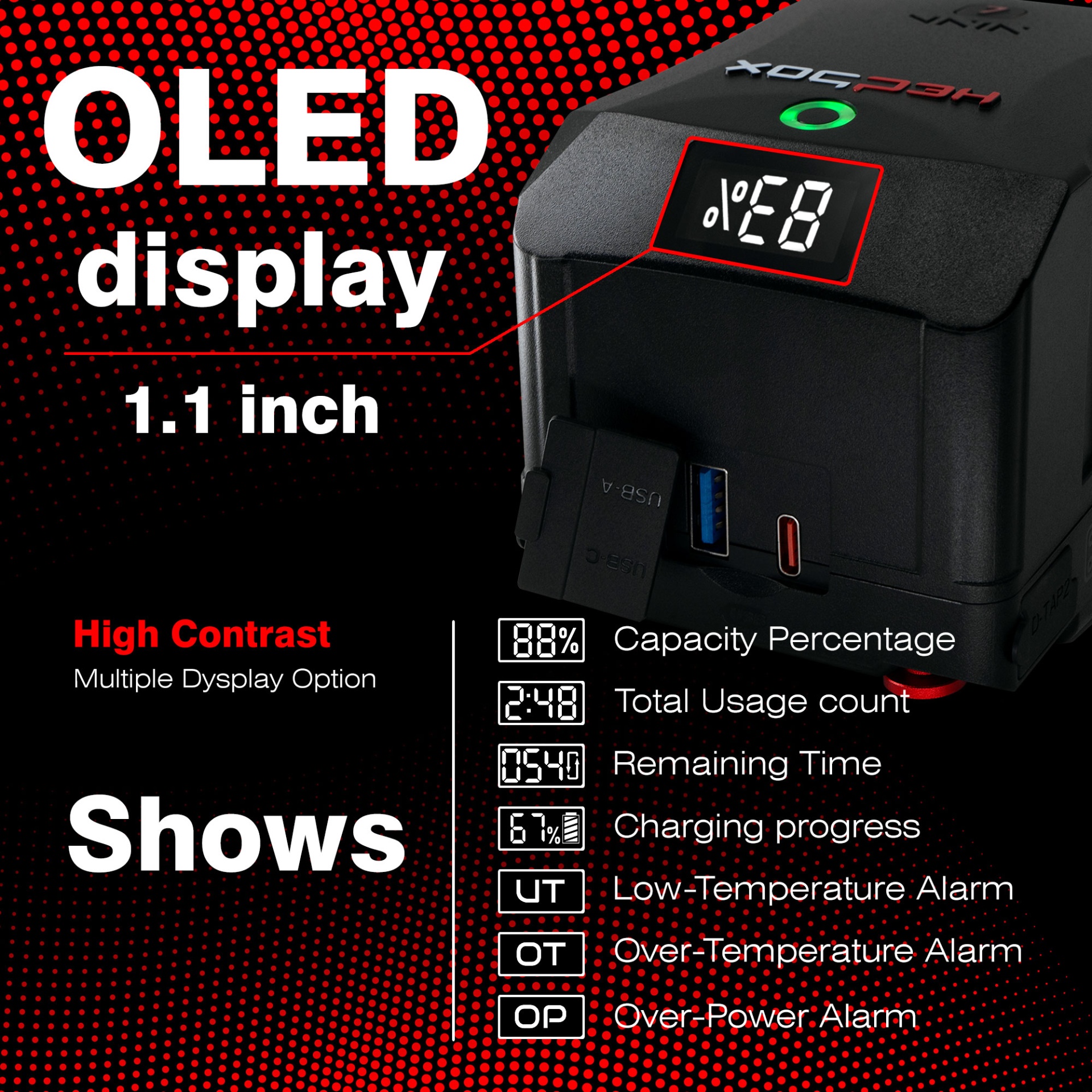 1 x Advance Li-Ion Battery pack 1 x USB-C to USB-C LED Display Cable 1.2M 1 x User manual ( English )