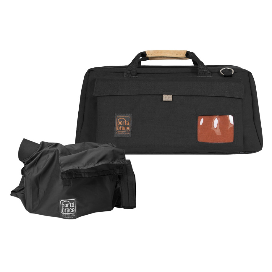 The MINI-DV CAMERA CASE with Quick Slick Mini rain cover protects and organizes the camera and the essential spare battery, tape, microphones and rain cover. The bottom panel is reinforced with hollow core plastic, foam layers and a NEW layer of Slip Not fabric, which adds an extra layer of protection against water, dirt and grime with an easy wipe-off surface. 1" thick foam, 1000 denier Cordura Nylon with a generous coating of polyurethane waterproofing provides long lasting protection. The cradle inside is adjustable and stays where YOU put it to keep the camera from shifting. Also included: One small, padded pouch, a suede shoulder strap and a white balance card. One large exterior pocket holds, Rain Cover, Cables, and a wide slip pocket for white balance card, owners manual, maps airline tickets, etc.